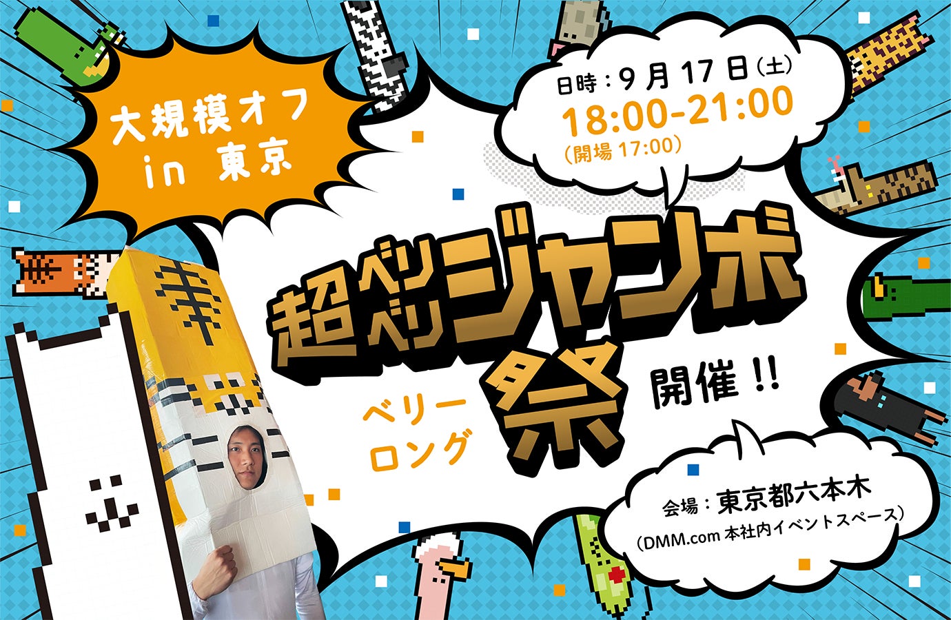 VeryLongAnimalsは大規模オフ会「超ベリベリジャンボ祭」を9月17日に合同会社DMM.com本社にて開催いたします旨、プレスリリースを掲載しました。